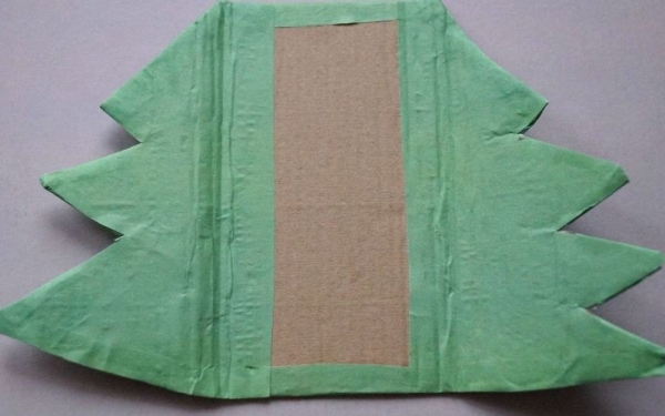 Далее заготовку нужно обклеить цветной бумагой зеленого цвета.