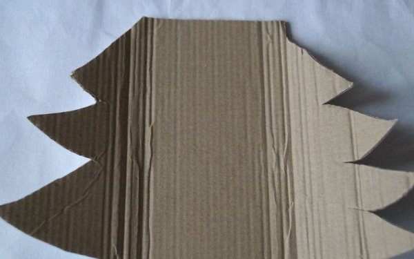 Из картона мы вырезали прямоугольник и на противоположных сторонах наметили рисунок елочки. Вырезаем по контуру.