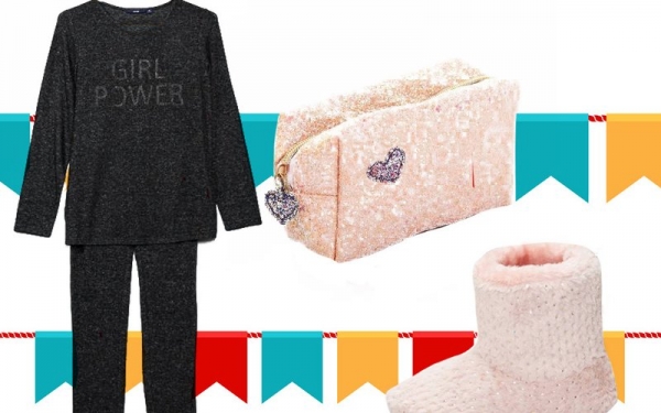 Пижама 1 300 рублей, косметичка 375 рублей, плюшевые тапочки 750 рублей.