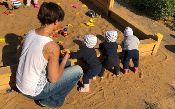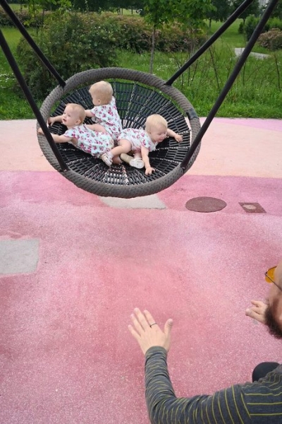 Однако в прикладном оптовом детоводстве обнаружился нюанс, к которому я не была готова. Сейчас, когда одна моя дочь уже давно и уверенно бегает по площадке, штурмует “взрослые” горки и никогда не прочь затусить с детьми постарше, двое других только-только начали передвигаться без поддержки, но уверенно чувствуют себя в пространстве, только если держат меня за пальцы.