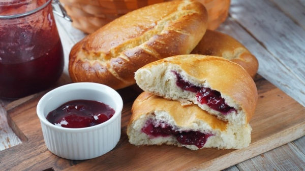 - Все ингредиенты соединяли, вымешивали тесто и оставляли для расстойки на 2-3 часа, за это время дважды обминая его. Пирожки начиняли густым повидлом, снова оставляли на полчаса подходить, а затем обжаривали в большом количестве масла.