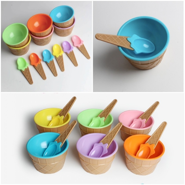 Отличное решение для детских праздников — яркие пиалы для мороженого и других десертов. В комплекте идут веселые ложки в том же стиле. Набор выполнен из пластика, а значит, риск его разбить сводится к минимуму.