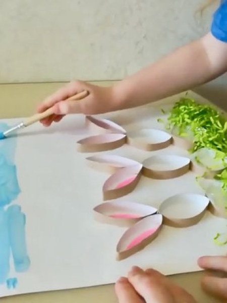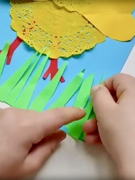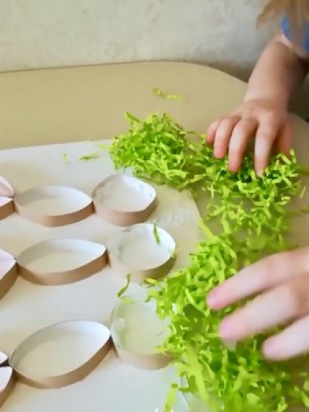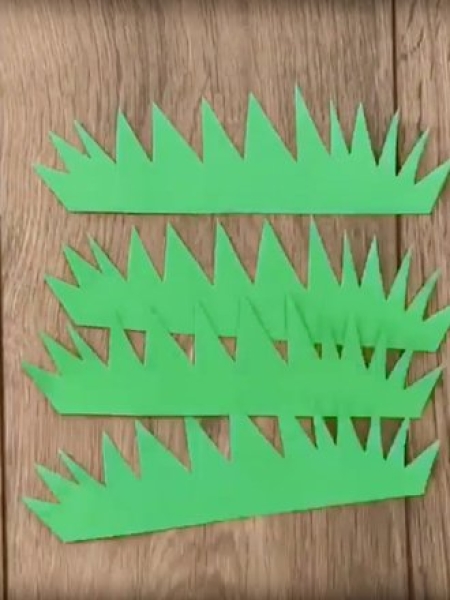 2. Сделайте травку из зеленой бумаги, приклейте вниз поделки.