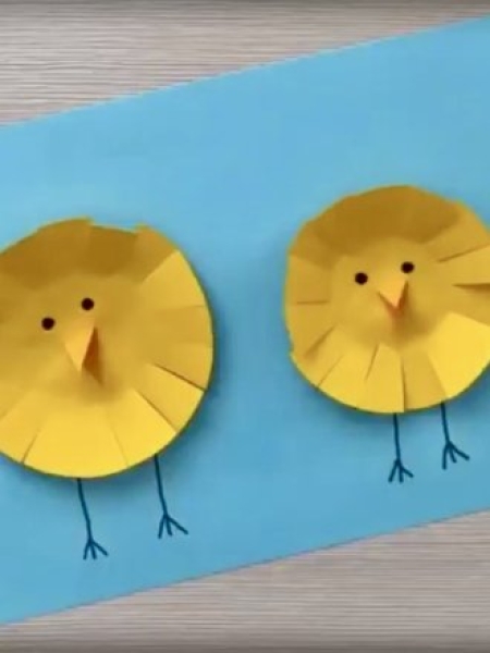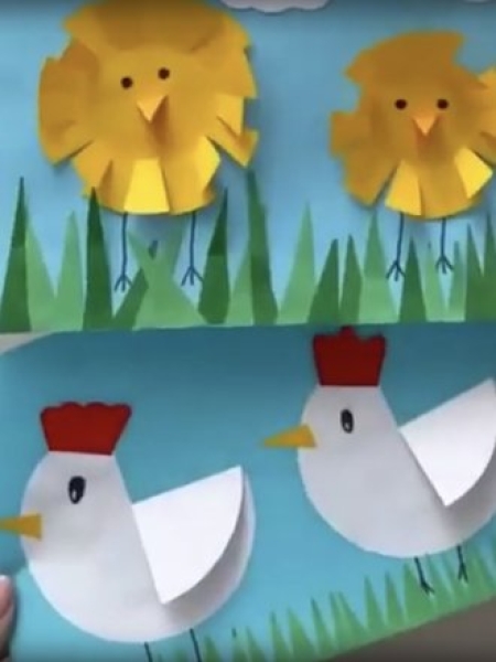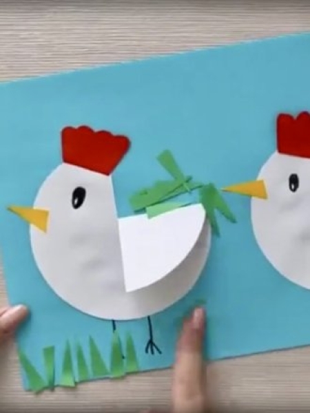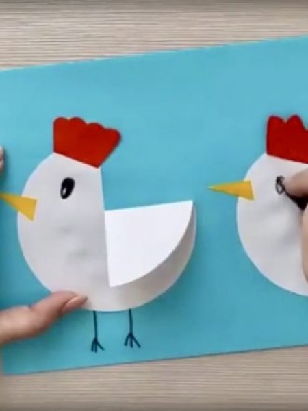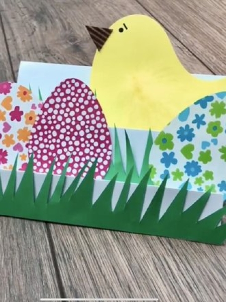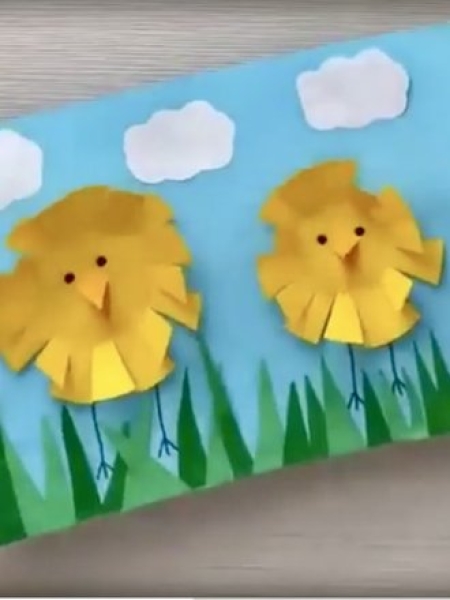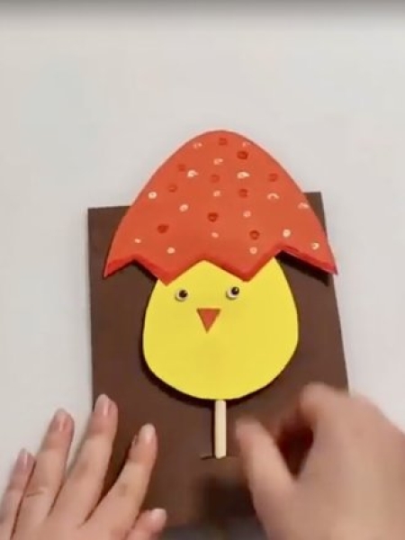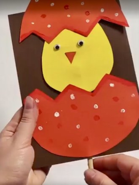 Оригинальный вариант поделки на Пасху — динамичная открытка с цыпленком.