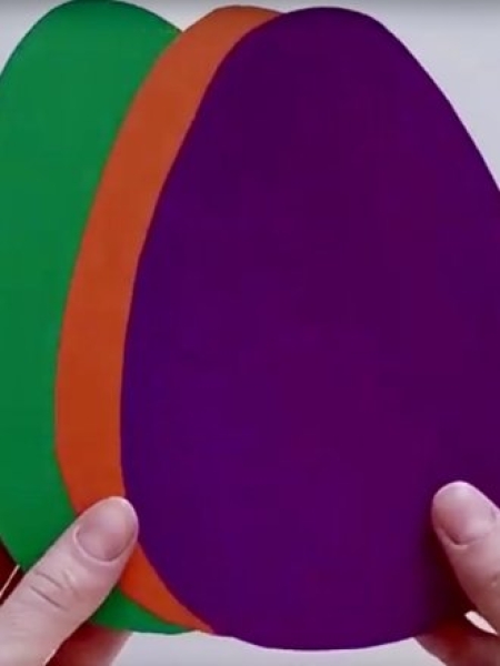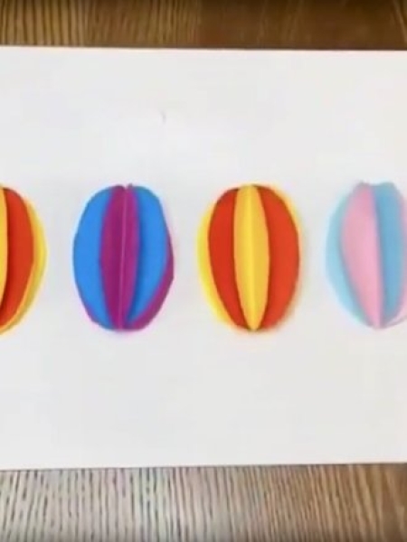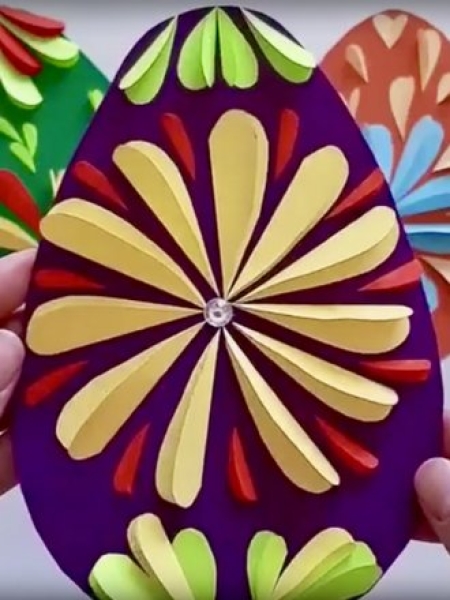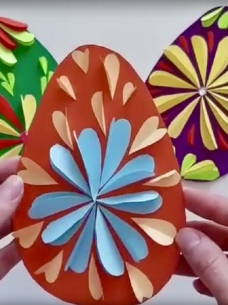 1. Вырежьте из цветного картона три яйца.