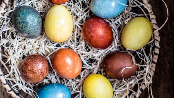 Начнем с главного атрибута праздника — яиц, которые положим в красивую корзинку.