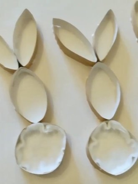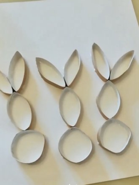1. Разрежьте втулки на 12 кружков шириной примерно 1 см. Склейте их между собой, чтобы получились зайцы.