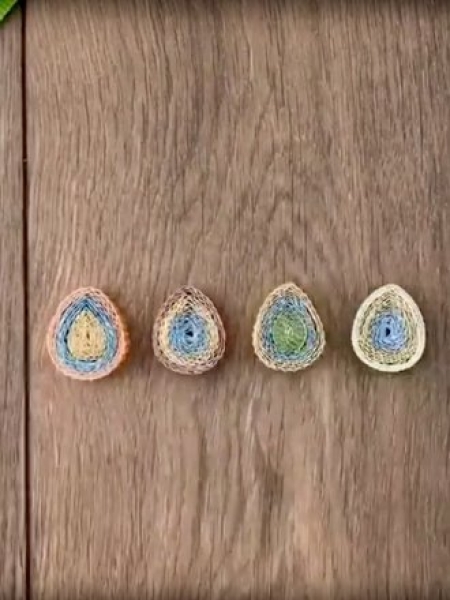 2. Склейте овалы между собой по пять штук так, чтобы получилось четыре объемных яйца.