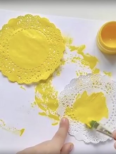 1. Раскрасьте салфетки желтой краской.
