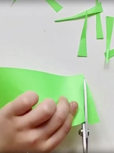 2. Нарежьте травинки из зеленой бумаги.