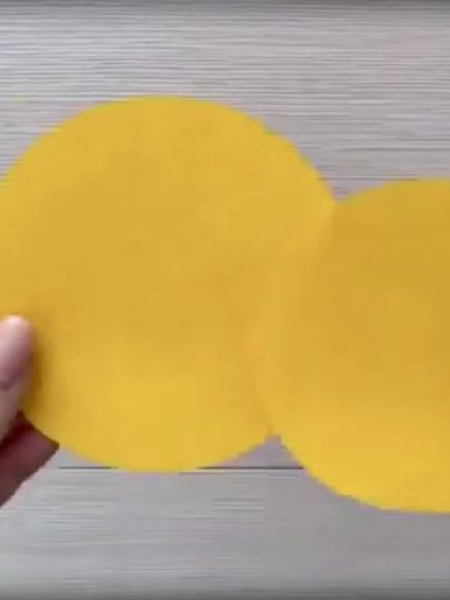 1. Сделайте два круга из желтой бумаги, надрежьте их по краю.
