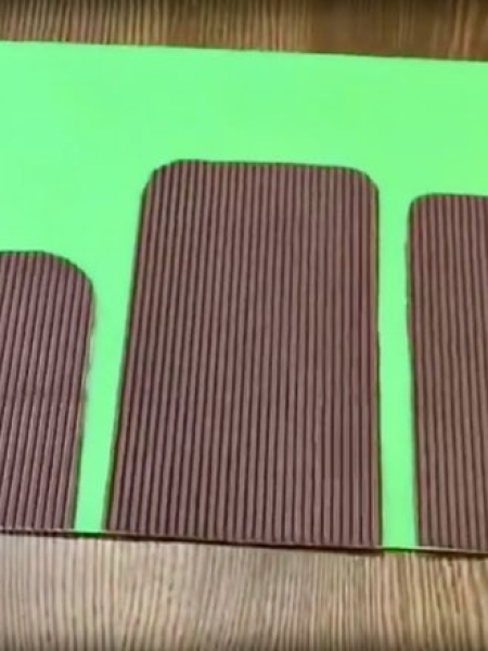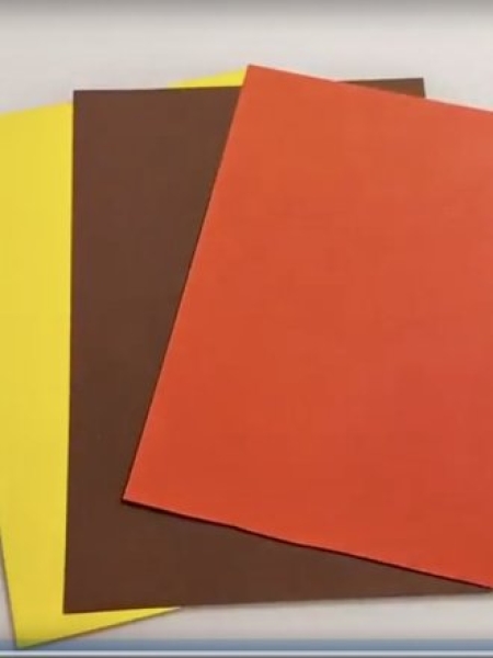 1. Возьмите три листа картона: красный, желтый и коричневый.
