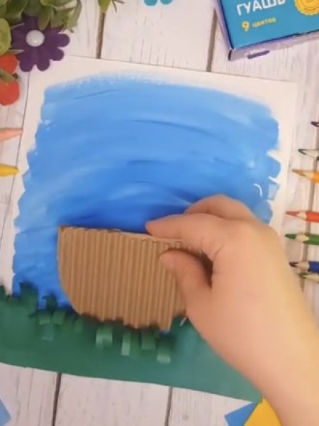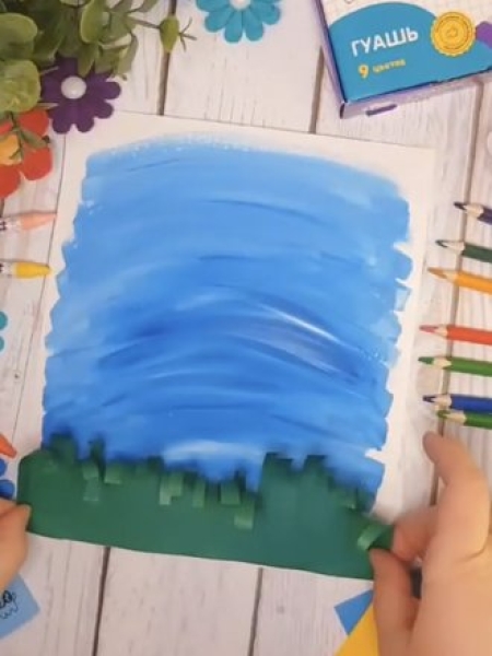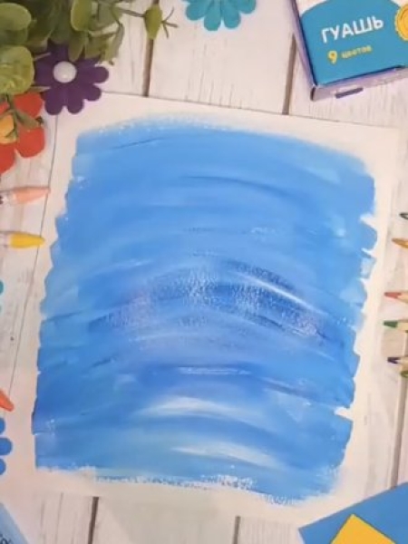 1. Раскрасьте белый лист голубой краской.