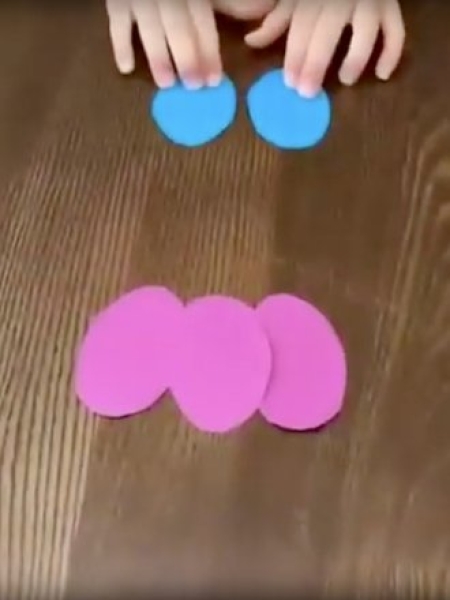 1. Вырежьте 25 овалов из цветной бумаги, сложите их пополам.