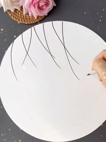 1. Нарисуйте сверху открытки веточки фломастером.