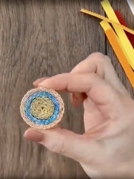 2. Сверните несколько полосок картона в диск, край подклейте.