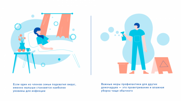 Важные меры профилактики для других домочадцев — это более частое проветривание и влажная уборка, ведь вирусы и микробы легко оккупируют воздух и поверхности в помещении. А вот популярные сейчас кварцевание и ионизация куда менее эффективны и не слишком оправданны в домашних условиях.