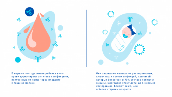 В первые полгода жизни ребенка в его крови циркулируют антитела к инфекциям, полученные от мамы через плаценту и грудное молоко.
