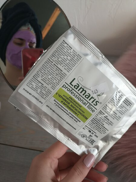 Итак, приступим. Наша героиня сегодня — одна из моих любимых альгинатных масок Lamaris. Активными компонентами маски выступают экстракты: черники, арники, миоксинол, витамин С.