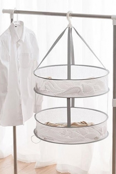 Почему пригодится: Часто в рекомендациях по уходу за шерстяными вещами и трикотажем есть указание сушить в горизонтальном положении. Со специальной подвесной сетчатой полкой у вас отпадет вопрос, где разложить выстиранный свитер или кардиган. Продавец предлагает разноуровневые сушилки.