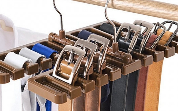 Почему пригодится: Ремни, особенно из кожзама или экокожи, не рекомендуют хранить в скрученном виде: материал деформируется. Развесьте аксессуары на подвесном держателе.