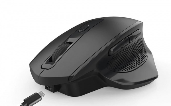 - Мышь очень легкая, большая, хорошо «лежит» в руке, только непривычно высоковата (но можно быстро адаптироваться к этому), правая и левая кнопки бесшумные, имеют мягкий нажим. Еще преимущество увеличенной высоты мыши в том, что это сводит к минимуму случайные нажатия боковых кнопок. Мышь пришла упакованной в «пупырку» и коробку + шнур для зарядки. Доставка курьером за 10 дней. Покупкой довольна, посмотрим на сколько будет хватать заряда аккумулятора.