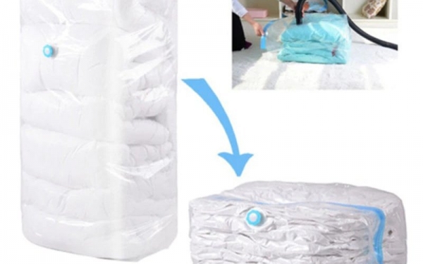 Почему пригодится: Один из лучших способов не захламлять квартиру или взять в путешествие больше полезных вещей — сложить зимнюю или летнюю одежду, мягкие игрушки, объемные одеяла и подушки в специальные пакеты. Воздух из них откачивается при помощи обыкновенного пылесоса — через клапан.