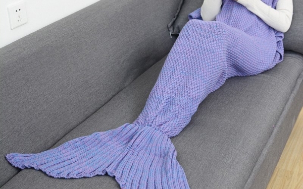 Еще один плед, из-под которого не хочется выбираться. Он прекрасно смотрится на фотографиях и хорошо согревает. Можно выбрать размеры изделия (от 90*50 см до 195*90 см) и один из 14 цветов. Материал искусственный (акрил), он достаточно прочный и теплый. Одеяло полностью прикрывает ноги и часть живота — в зависимости от роста человека. Самый маленький размер подойдет для двухлетних детей, большой хвост могут использовать взрослые. Его вес составляет всего 700 г, так что вполне можно взять необычную вещь с собой на пикник или в длительную поездку.