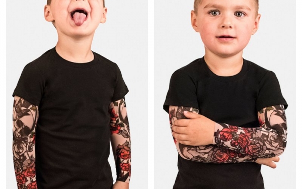Такую одежду непременно оценят родители с чувством юмора (бабушку лучше не шокировать). Это детские джемпер и боди, рукава которых имитируют большие татуировки. Выглядит очень эффектно! Магазин предлагает размеры от 6 месяцев до 7 лет.