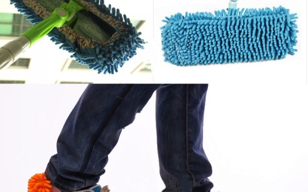 Забавные на вид тапочки, но имеющие вполне практичное применение. Специальный ворс, впитывающий влагу, отлично справляется с мытьем пола. К тому же никто не мешает снять тапочки с ног и надеть на швабру, используя их уже в более традиционном варианте.