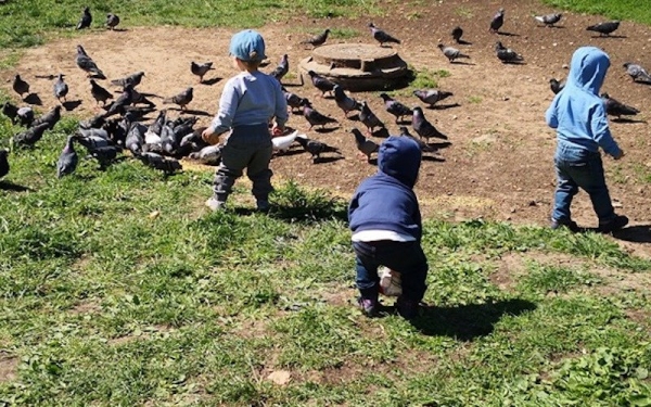 Вышли с малышами поутру скормить хлеба районным голубям.